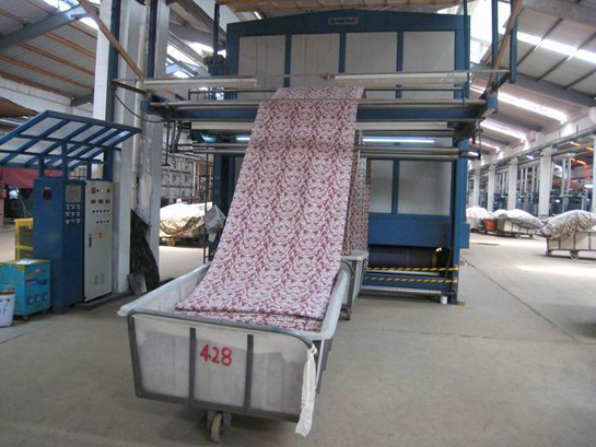• 生产设备 - 16套平网印花机 - 12套色圆网印花机 - 电脑分色车间 - 电子喷墨制网机 - 高效丝光机 - 光电整纬机 - 韩国大阳蒸化机 - 后整理定型拉幅机 - 后整理轧光机 - 染色机 - 退煮漂联合机 - 验卷机 - 预缩机