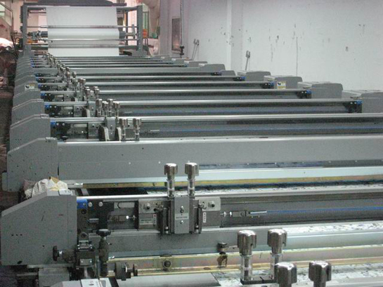 • 生产设备 - 16套平网印花机 - 12套色圆网印花机 - 电脑分色车间 - 电子喷墨制网机 - 高效丝光机 - 光电整纬机 - 韩国大阳蒸化机 - 后整理定型拉幅机 - 后整理轧光机 - 染色机 - 退煮漂联合机 - 验卷机 - 预缩机